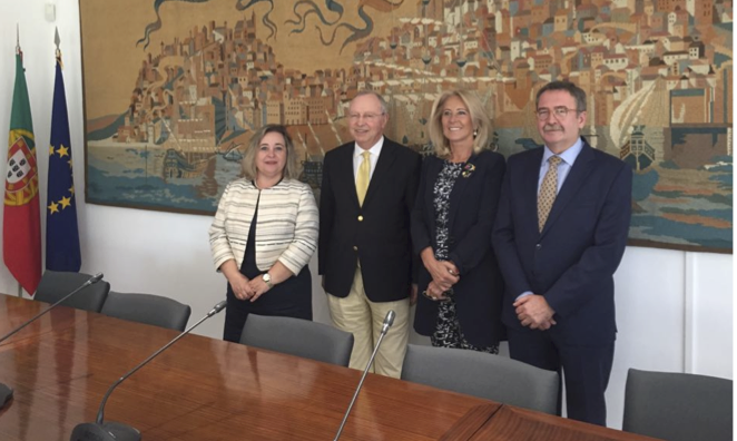 Na imaxe, a presidenta do CES de Estremadura, Mercedes Vaquera Mosquero, co presidente do CES de Portugal, António Correia de Campos, a presidenta do CES de Galicia, Corina Porro Martínez, e o presidente do CES de Andalucía, Ángel Gallego Morales, o mércores en Lisboa.