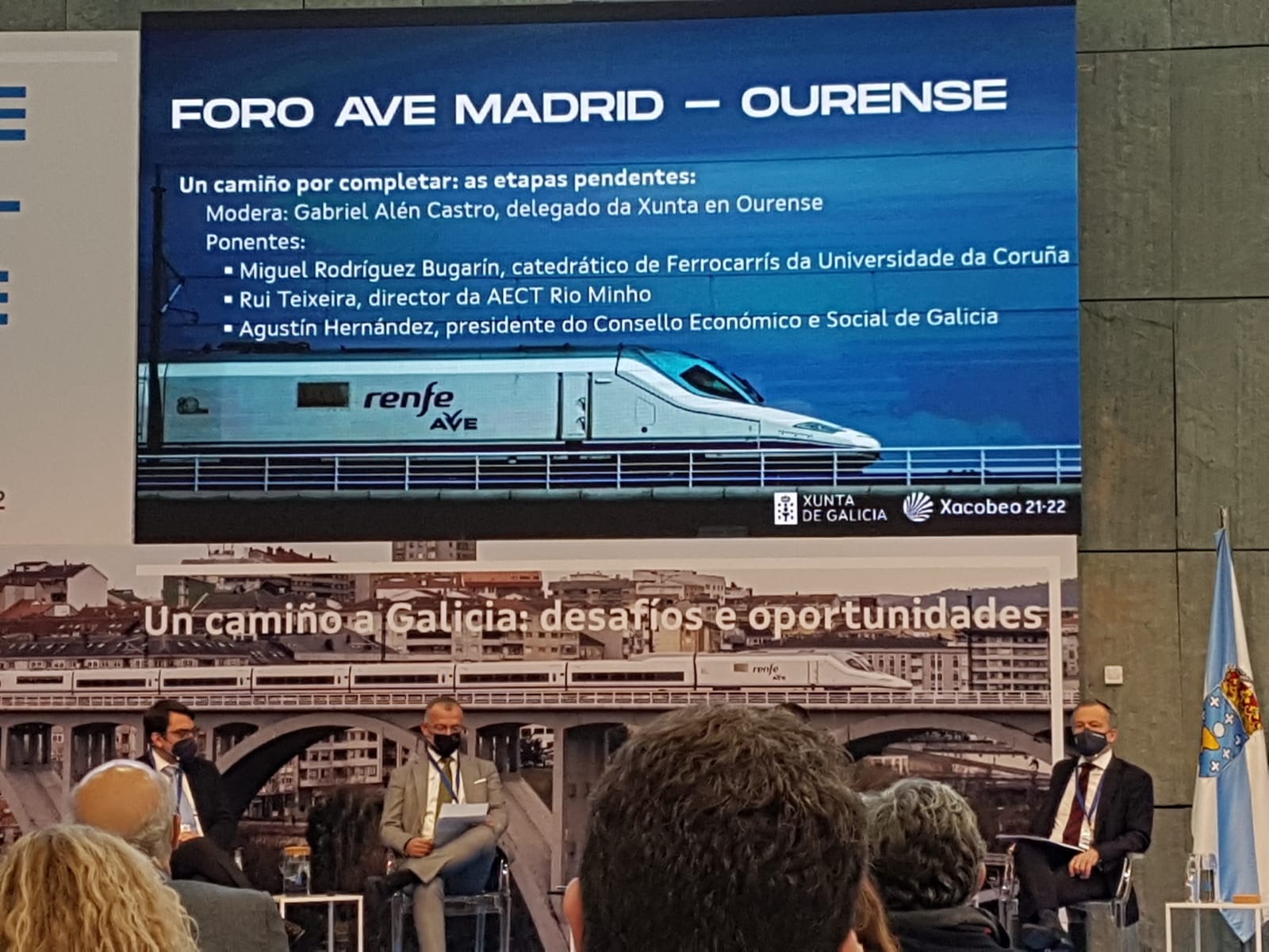 O Consello Económico e Social participou hoxe no foro AVE Madrid–Ourense “Un camino a Galicia: desafíos e oportunidades”, que se celebrou na cidade das Burgas. A través dunha intervención do presidente, Agustín Hernández, nunha mesa redonda titulada “O camino por completar: as etapas pendentes”, o organismo estivo presente nun encontro que tentou amosar as novas realidades que a recente posta en marcha da conexión de alta velocidade entre Ourense e Madrid suporá para este territorio.