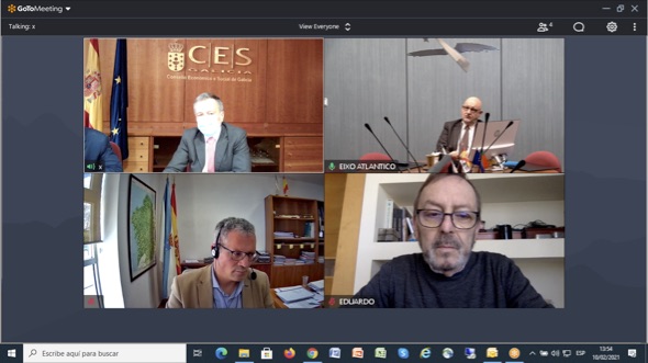 Poñer en común unha estratexia conxunta sobre o desenvolvemento do corredor atlántico en Galicia. Este foi o obxectivo da reunión que mantuvieron hoxe o Consello Económico e Social, a Fegamp, a Xunta de Galicia e mais o Eixo Atlántico por vía telemática. O presidente do CES, o secretario xeral da Federación Galega de Municipios e Provincias, o director xeral de Mobilidade da Xunta e o secretario do Eixo Atlántico buscan establecer unha vía de traballo conxunta para potenciar e desenvolver o corredor atlántico e que este asunto sexa central na axenda de Galicia. As catro entidades emplazáronse para continuar afondando na súa colaboración nas vindeiras semanas.