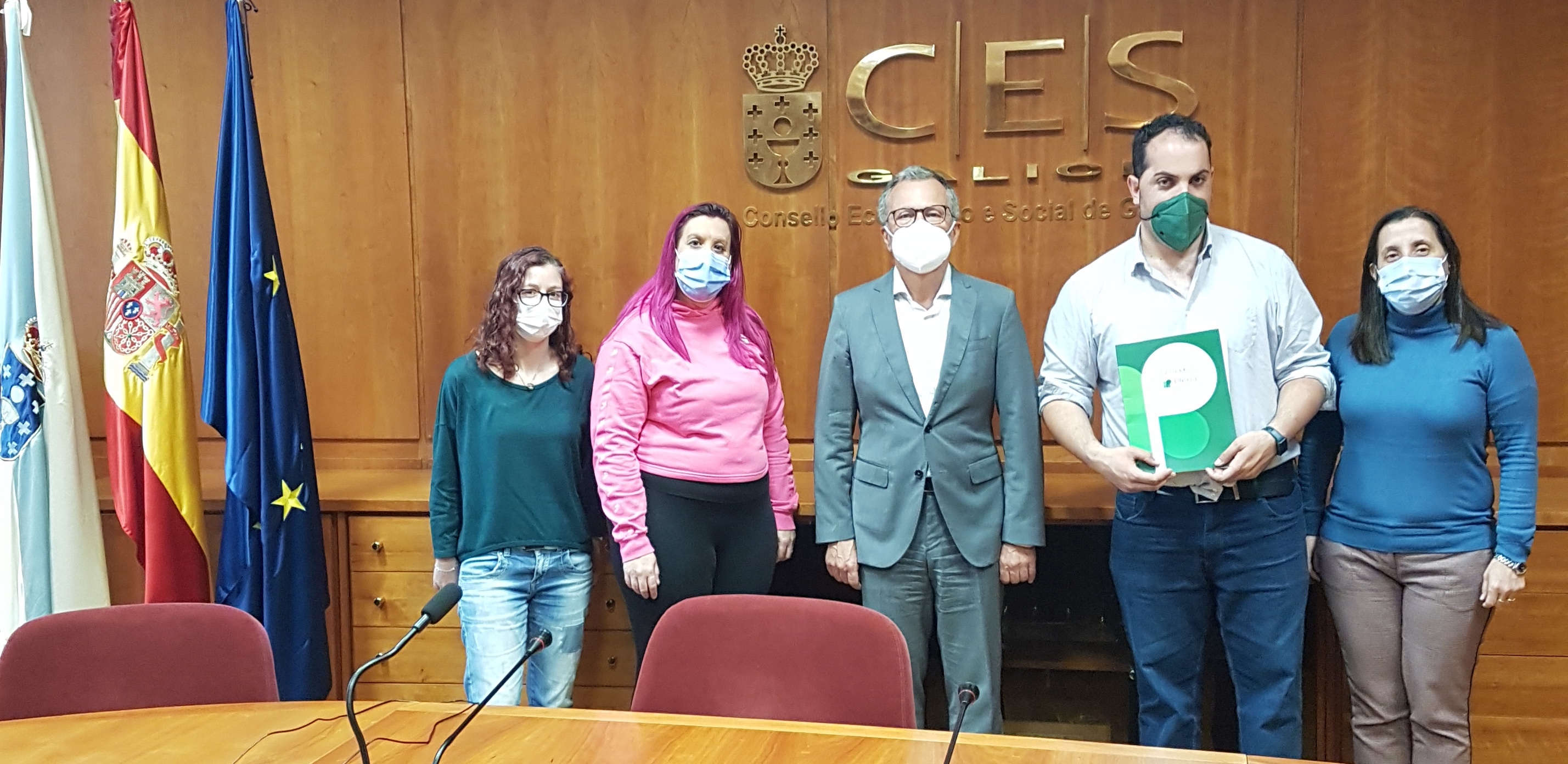 Na imaxe, os representantes de FADEMGA Plena inclusión Galicia flanquean ao presidente do CES, Agustín Hernández.