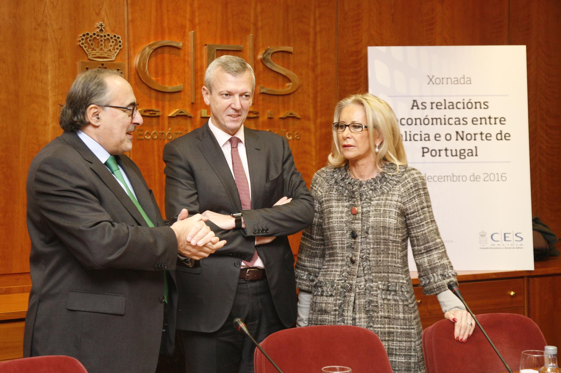 Pola súa banda, a presidenta do CES salientou o bo clima de entendemento entre "dous pobos moi cercanos" e insistiu na necesidade de seguir traballando nun diálogo fructífero dos representantes políticos e os axentes sociais. Tamén agradeceu a presencia do presidente da Comisión de Coordenación e Desenvolvemento Rexional do Norte de Portugal, Fernando Freire de Sousa, e os seus colaboradores y dunha representación de membros do Conselho Económico e Social do veciño luso, que tamén participaron na mesa redonda que pechou o acto. Esta participación dos axentes socioeconómicos portugueses enmárcase no convenio asinado recentemente entre distintos CES autonómicos españois e o organismo portugués para tratar temas de interese común.