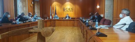 Por primeira vez desde o comezo da pandemia, a Comisión Permanente do CES celebrou hoxe unha sesión presencial. Para cumprir con todos os protocolos de seguridade covid, a reunión tivo lugar na sala do Pleno. Os membros amosaron a súa confianza en que este sexa o primeiro paso para recuperar a normalidade.